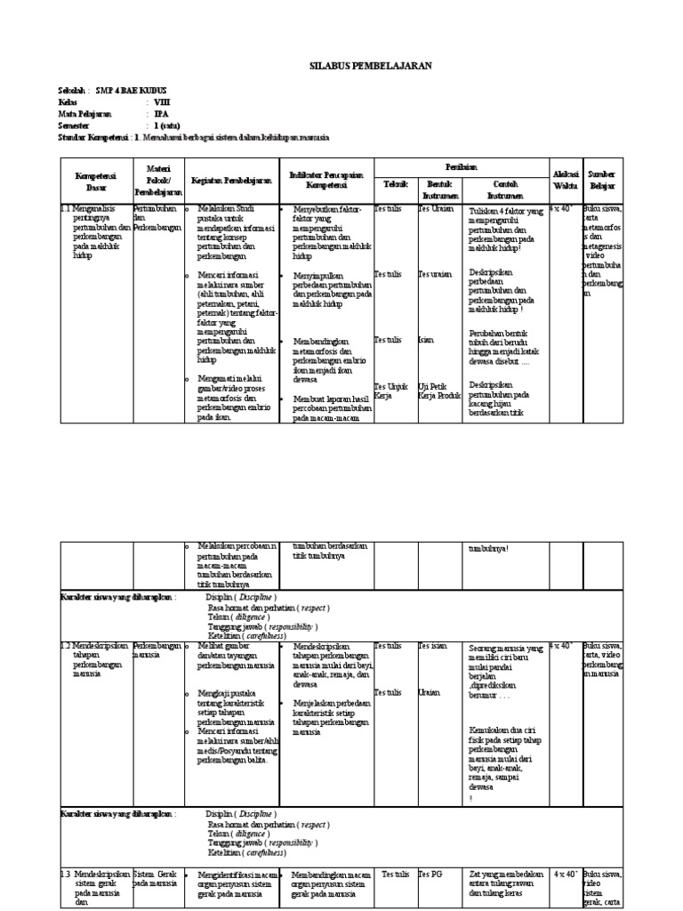 Download silabus bahasa indonesia smp/mts kelas 7,8,9 k13 revisi terbaru. Silabus bahasa indonesia smp/mts kelas 8 kurikulum 2013 revisi 2020 ini kami bagikan gratis untuk bapak/ibu guru yang mengajar mata pelajaran bahasa indonesia sebagai pola atau perbandingan untuk dipakai dalam menciptakan rencana pelaksanaan pembelajaran (rpp) bahasa indonesia smp/mts untuk semester 1 dan 2. Silabus kelas 1 sd kurikulum 2013 revisi 2018 semua tema materiku. Silabus di gunakan sebagai acuan dalam membuat perangkat pembelajaran lainnya seperti membuat rpp atau rencana pelaksanaan pembelajaran. Silabus bahasa indonesia kelas 8 smp mts k13 revisi 2018 portal pendidikan. Bapak dan ibu guru tentu harus mempersiapkan kembali perangkat pembelajarannya. Silabus pjj bahasa indonesia smp mts kelas 7, 8, 9 semester 1 dan 2. Berikut ini link download yang sudah kami sediakan di bawah ini. Rpp, silabus, bahasa, indonesia, smp, kelas, 7, 8, 9, ktsp, semester created date: Menurut kunandar dalam bukunya yang berjudul guru profesional : Perangkat pembelajaran khususnya silabus merupakan perangkat pembelajaran yang sangat penting bagi seorang guru mata pelajaran. Perangkat ajar berupa silabus kurikulum 2013 yang kami bagikan ini merupakan silabus yang digunakan untuk jenjang sekolah menengah pertama atau smp untuk semester 1 dan semester 2. Smp klas viii rpp bahasa indonesia viii.20.docx.